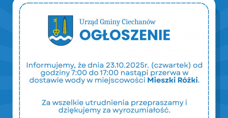 Na podstawie § 56 Uchwały Nr XLII/239/18 Rady Gminy Ciechanów w sprawie Statutu Gminy Ciechanów zwołuję posiedzenie Komisji Planowania Budżetu i Rozwoju Gospodarczego Rady Gminy Ciechanów w dniu 04.11.2021 r. o godz. 10.00 w lokalu Urzędu Gminy Ciechanów, ul. Fabryczna 8.