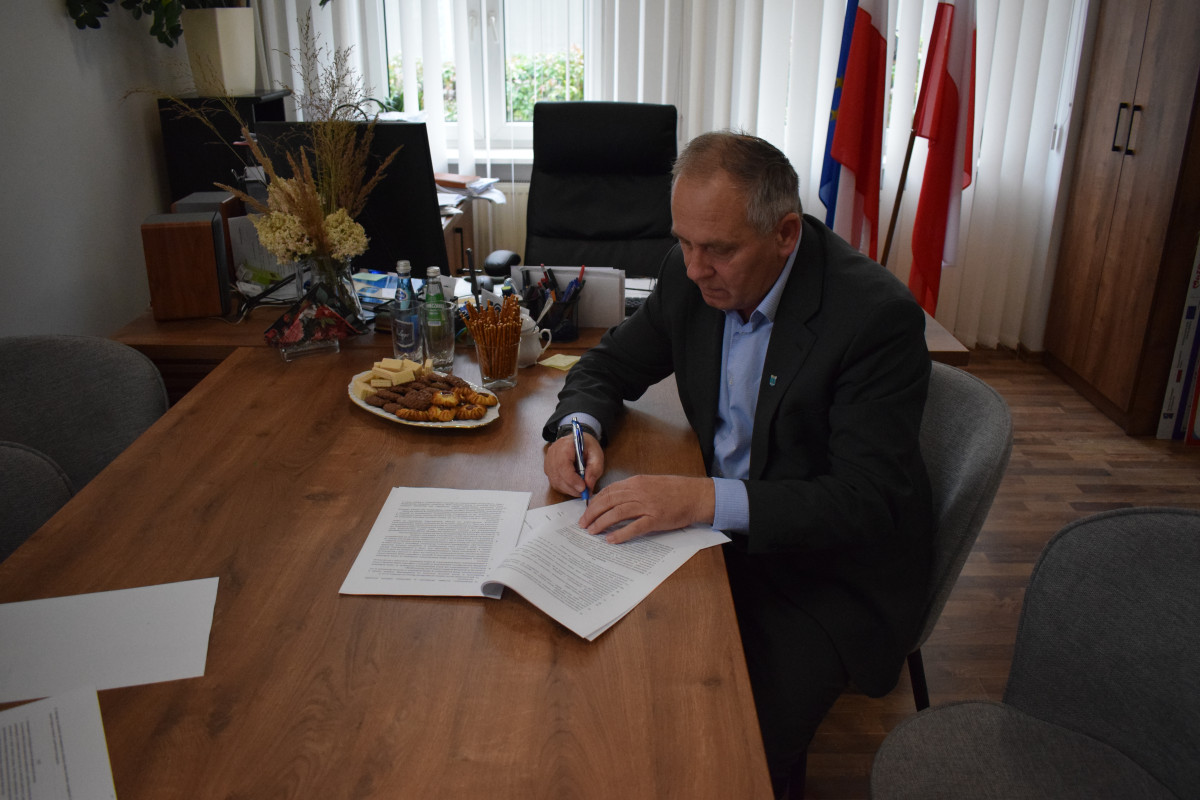 Dziś 9 października w Urzędzie Gminy została podpisana kolejna umowa, tym razem na realizacje zadania pn. „Przebudowa drogi nr 120266W do wysypiska śmieci w Woli Pawłowskiej”. Wykonawcą robót będzie firma Z.U.H. KOPTRANS Witold Piętka z Ciechanowa. Wartość robót wg podpisanej umowy to 755 649,27 zł brutto. Dzięki współpracy z Prezydentem Miasta Ciechanowa, zadanie to jest współfinansowane przez Gminę Miejską Ciechanów.