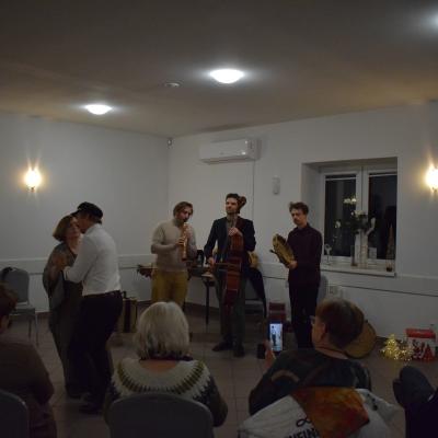 Na scenie wystąpił zespół Janusz Prusinowski Kompania, tworząc ciepłą i pełną energii atmosferę. Artyści opowiadali o muzyce, dzielili się ciekawostkami i swoim doświadczeniem, dzięki czemu koncert zyskał niezwykle kameralny, angażujący charakter.