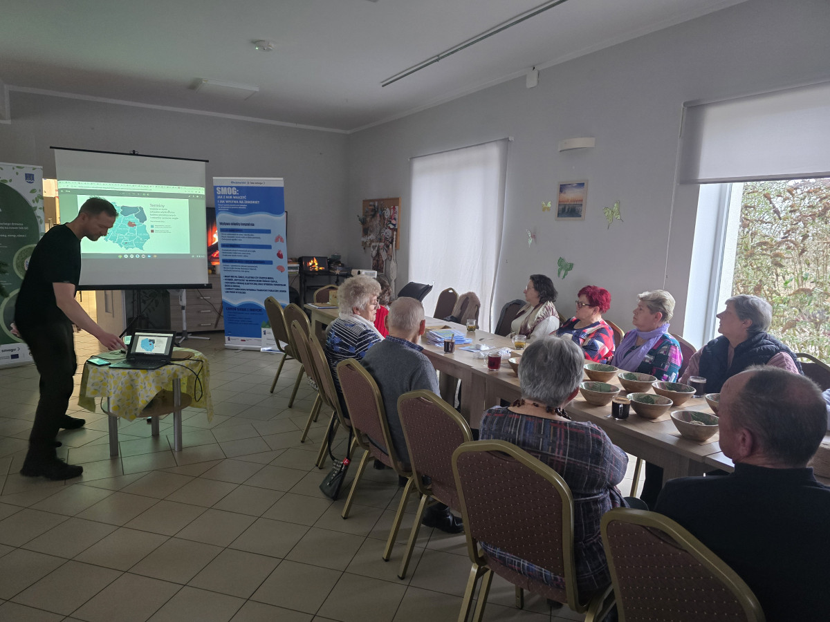 Drugie spotkanie odbyło się w świetlicy wiejskiej w Gąskach i było przeznaczone dla ogółu społeczeństwa. Poruszono temat uchwały antysmogowej – jej najważniejsze zapisy, obowiązki mieszkańców, zakazy oraz terminy ich wprowadzenia. Przedstawiono główne przyczyny złej jakości powietrza, m.in. spalanie odpadów, używanie starych kotłów, niskiej jakości paliwa oraz emisje komunikacyjne wynikające z niewłaściwego stylu jazdy. Omówiono także skutki zdrowotne i finansowe smogu, takie jak choroby układu oddechowego, obniżenie odporności czy wyższe koszty ogrzewania i leczenia.