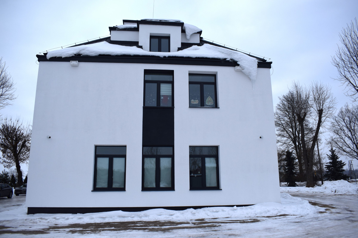 Zakres prac obejmował m.in. przebudowę i remont budynku, wykonanie nowoczesnej termoizolacji, modernizację instalacji wewnętrznych oraz montaż paneli fotowoltaicznych na dachu szkoły. Dzięki zastosowanym rozwiązaniom budynek stał się bardziej przyjazny środowisku, energooszczędny i dostosowany do współczesnych standardów użytkowych.