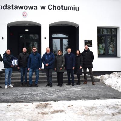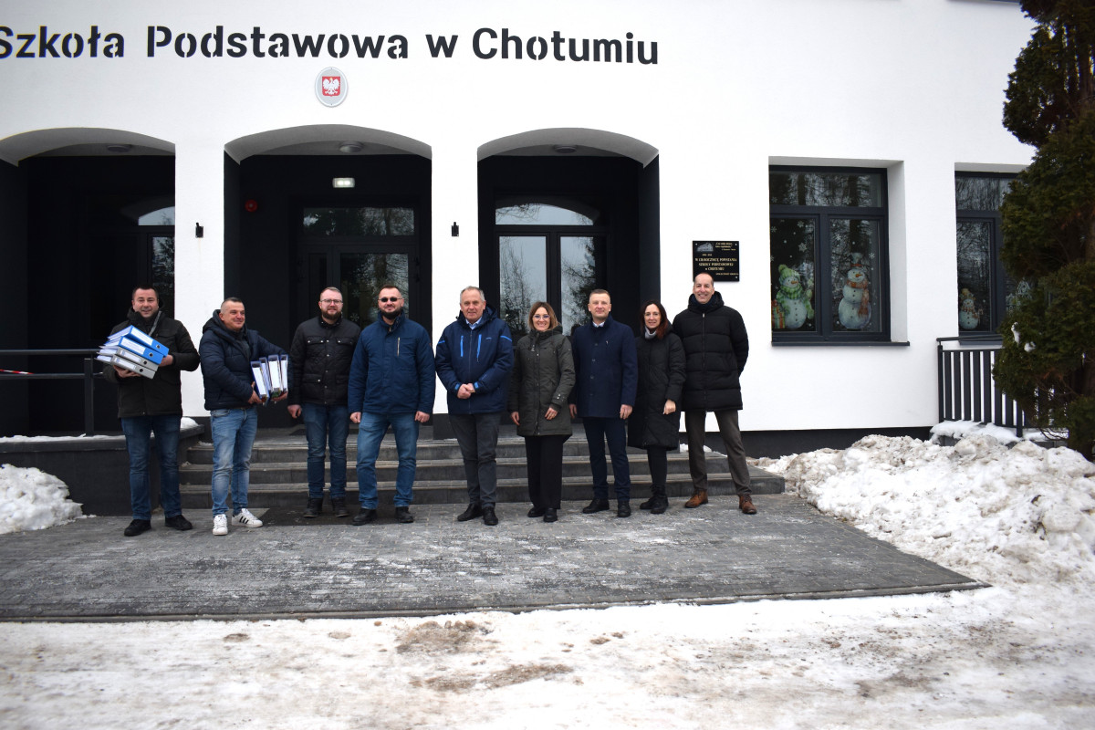 W dniu 30.01.2026r dokonano odbioru prac w ramach zadania inwestycyjnego pn. „Przebudowa, termoizolacja i remont budynku Szkoły Podstawowej w Chotumiu wraz z instalacjami oraz montażem paneli fotowoltaicznych na dachu budynku”. W odbiorze uczestniczyli: Wójt Gminy Ciechanów Stefan Pawłowski, Zastępca Wójta Krzysztof Głowacki, Kierownik Referatu rozwoju, inwestycji i zamówień publicznych Małgorzata Grzeszek, Radny Rady Gminy Ciechanów Kamil Studniak, Dyrektor Szkoły Podstawowej w Chotumiu Iwona Dawidzka, przedstawiciele Generalnego wykonawcy robót - Przedsiębiorstwo Handlowo Usługowe Paweł Ozdarski oraz przedstawiciele firmy Wojewódzkiego Przedsiębiorstwa Usług Inwestycyjnych Spółka. z o.o. w Ciechanowie.