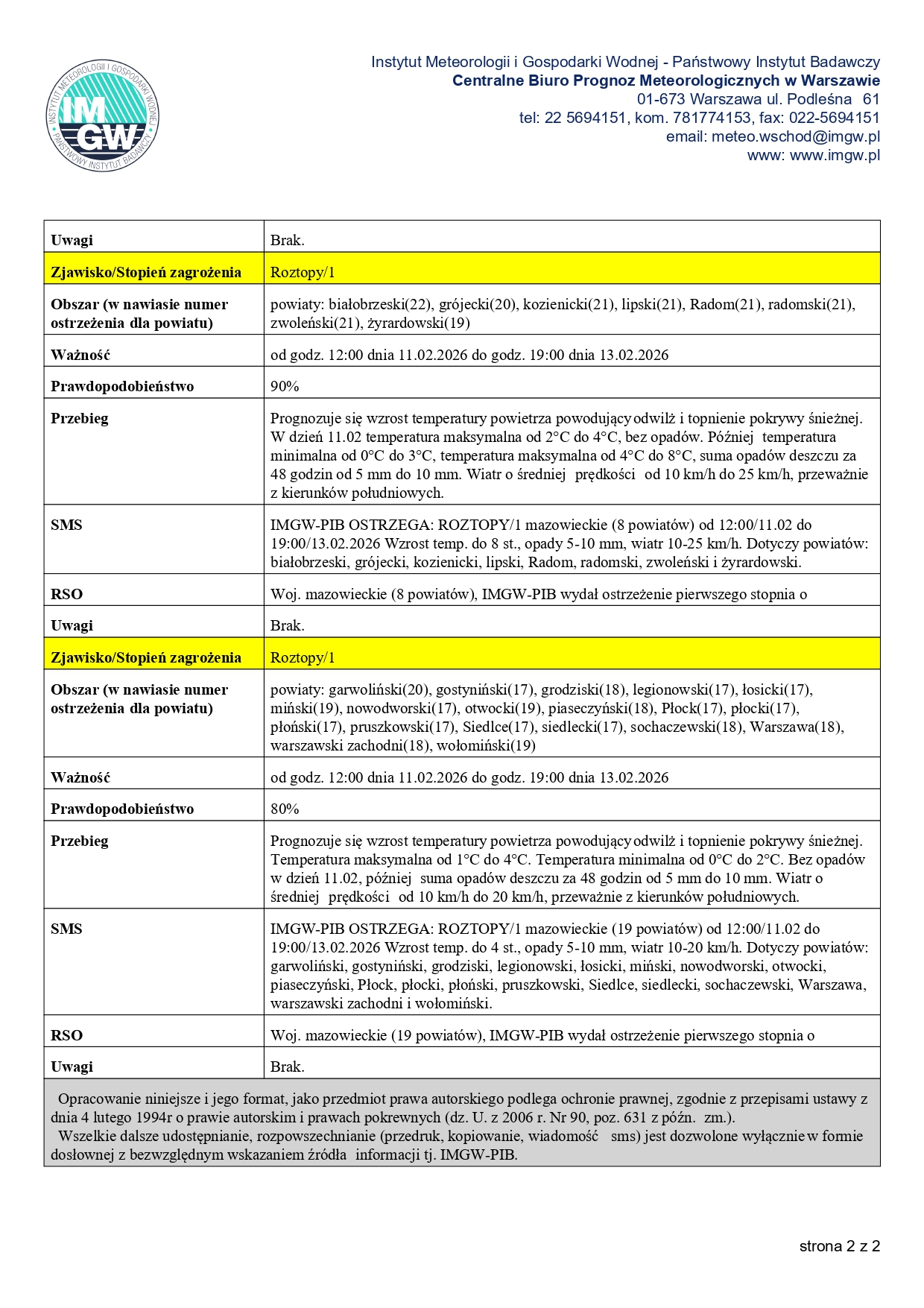 PROGNOZA POGODY DLA WOJ. MAZOWIECKIEGO