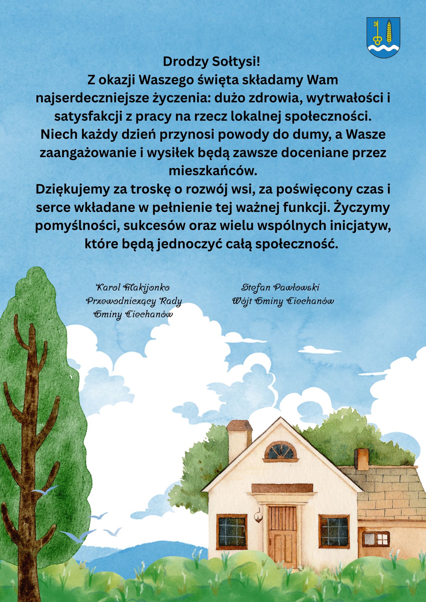 Drodzy Sołtysi! Z okazji Waszego święta składamy Wam najserdeczniejsze życzenia.