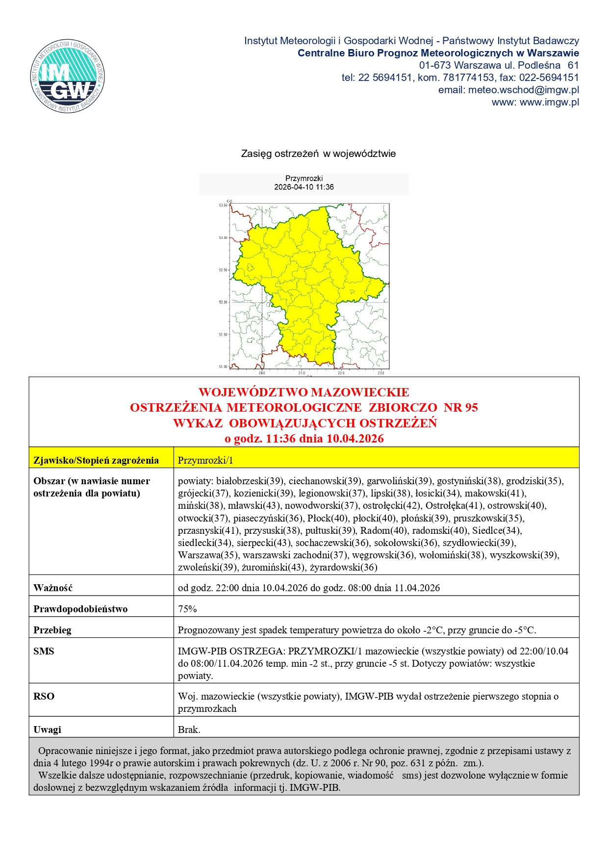 PROGNOZA POGODY DLA WOJ. MAZOWIECKIEGO
